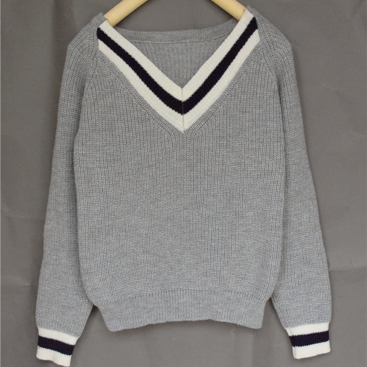 秋冬新款韓版V領(lǐng)短款套頭毛衣 寬松針織衫女裝大碼長袖打底衫 /