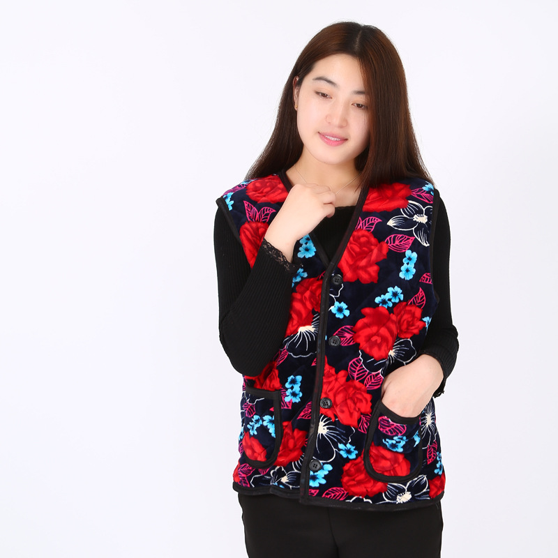 冬季 中老年女士加絨加厚保暖珍珠絨開衫馬夾大碼背心 地攤貨源 /