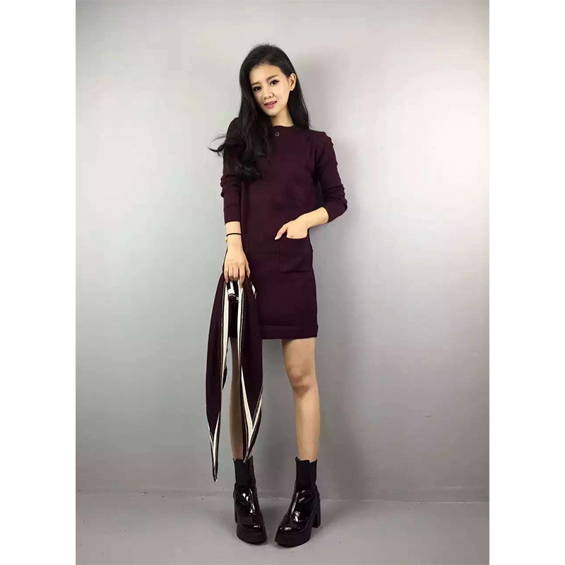 微信貨源 2015冬季新款女裝歐美潮牌同款撞色針織連衣裙代理加盟 /