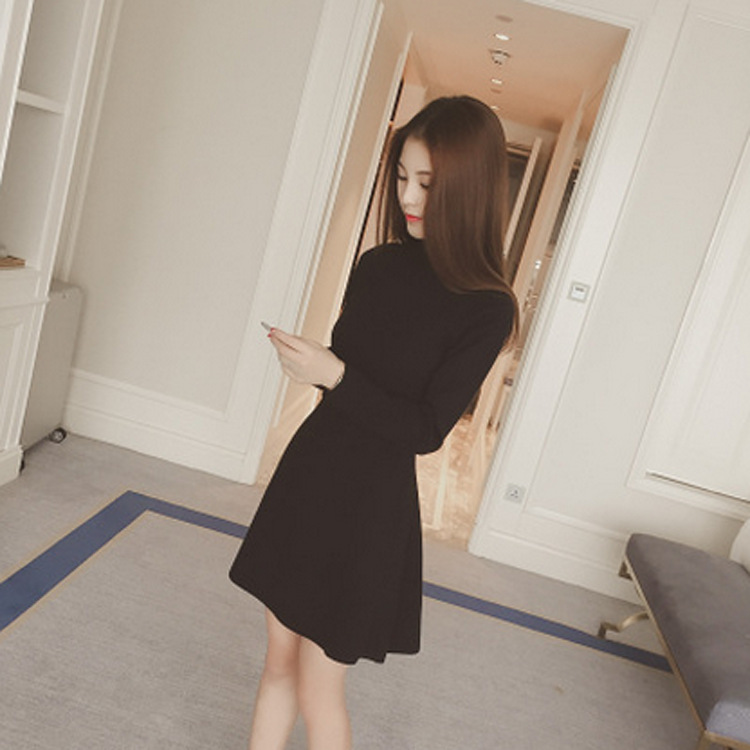 秋冬新款半高領(lǐng)毛衣套頭加厚中長款韓版修身連衣裙包臀針織 /