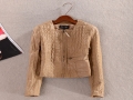 簡介: 貨號1-6 產地廣州 主圖來源實拍無模特 貨源類別現貨 是否庫存是 庫存類型整單 風格韓版 圖案純色 版型修身型 衣長短款(40cm<衣長≤50cm) 領型無領 衣門襟一粒扣 袖長長袖 袖型常規袖 流行元素如圖 上市年份/季節2014秋季 工藝拼貼/拼接 面料名稱歡迎致電 主面料成分聚乙烯醇纖維(維綸) 主面料成分的含量80(%)