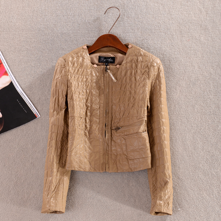 2015外貿休閑春新款皮革女裝修身PU皮機車夾克外套熱賣 /