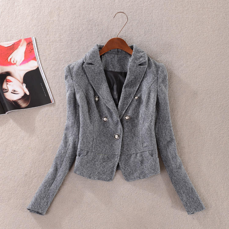 2015韓版修身OL時尚短款女士冬季毛呢純色外套 外貿原單精品貨源 /