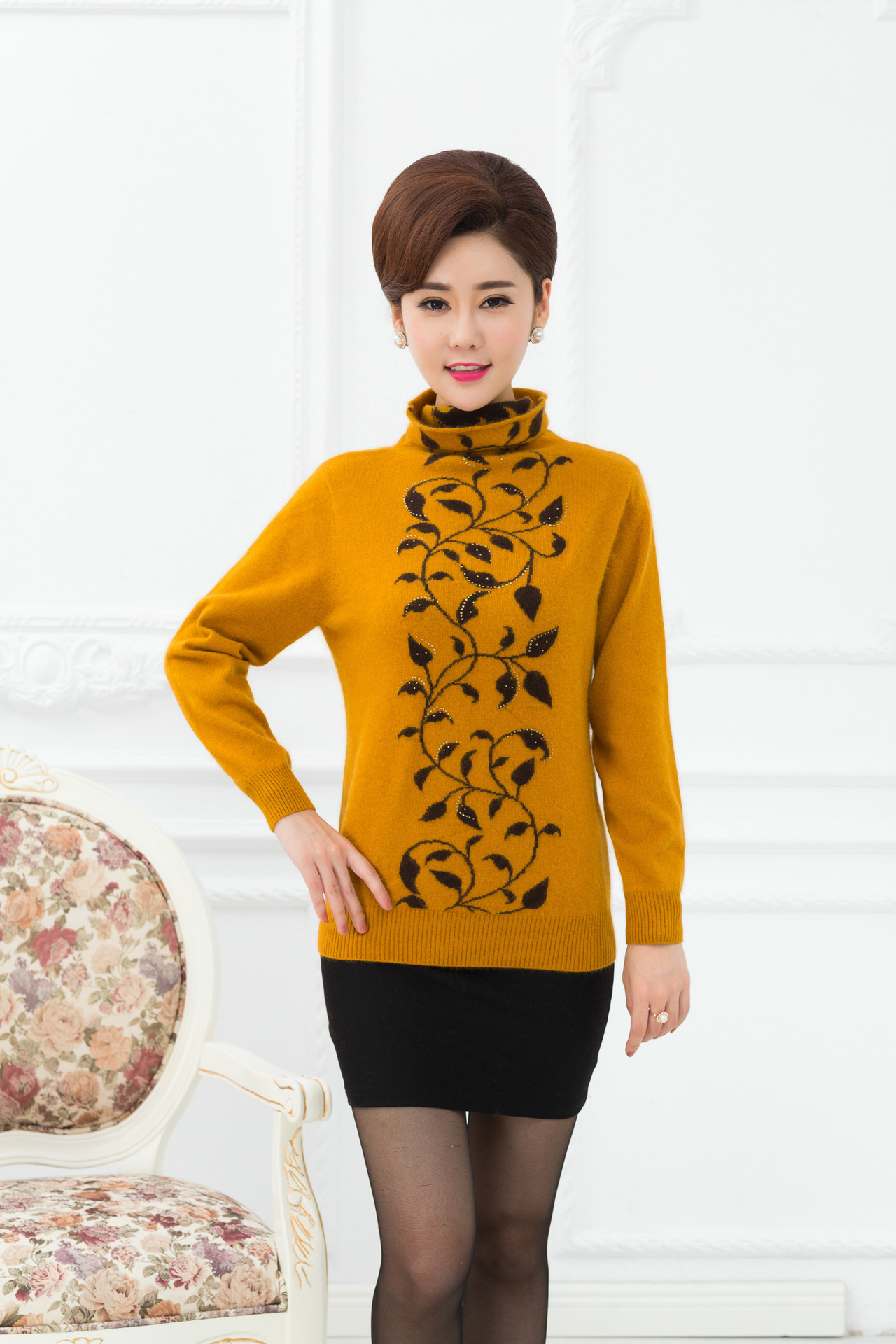 秋冬新款女士毛衣年輕媽媽裝高領打底衫寬松大碼套頭保暖貂絨上衣 /