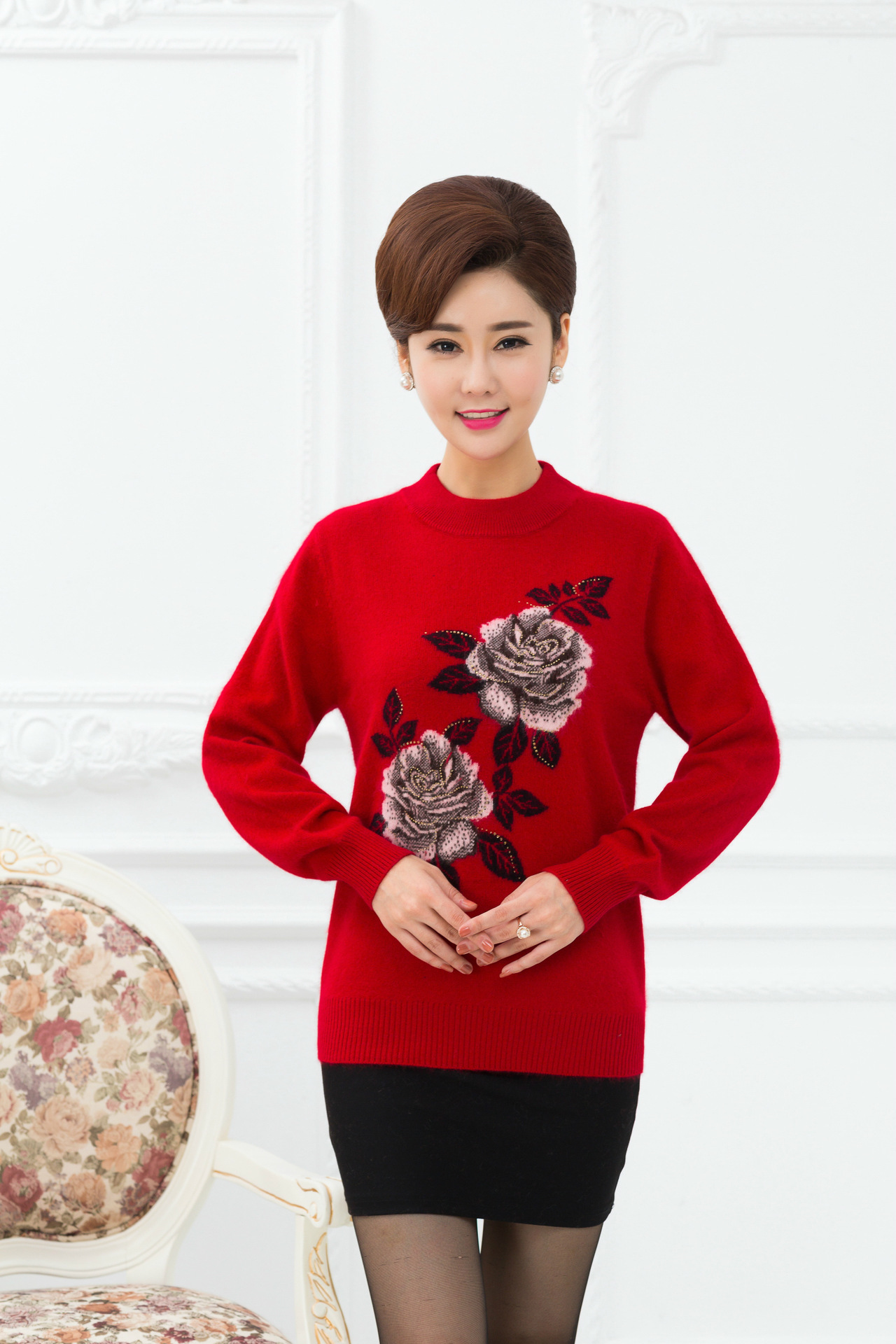 中老年女裝冬裝貂絨毛衣打底衫媽媽裝中年女士寬松大碼加厚羊毛衫 /