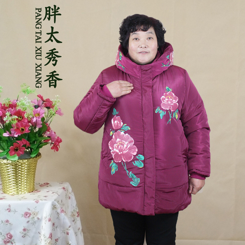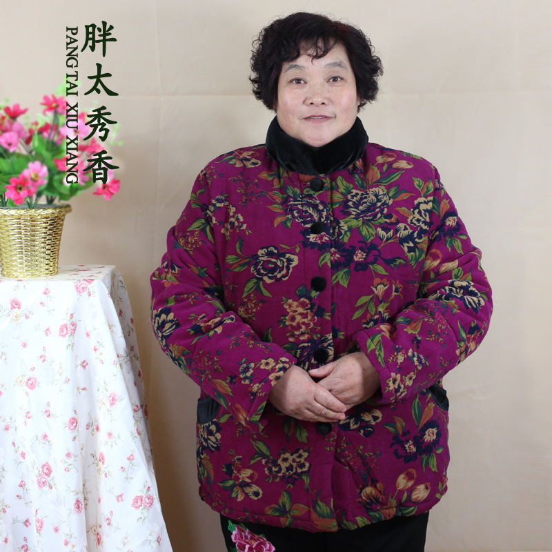 中老年棉服媽媽裝冬天 200斤胖太外套特大碼棉衣棉襖加厚印花牡丹 /