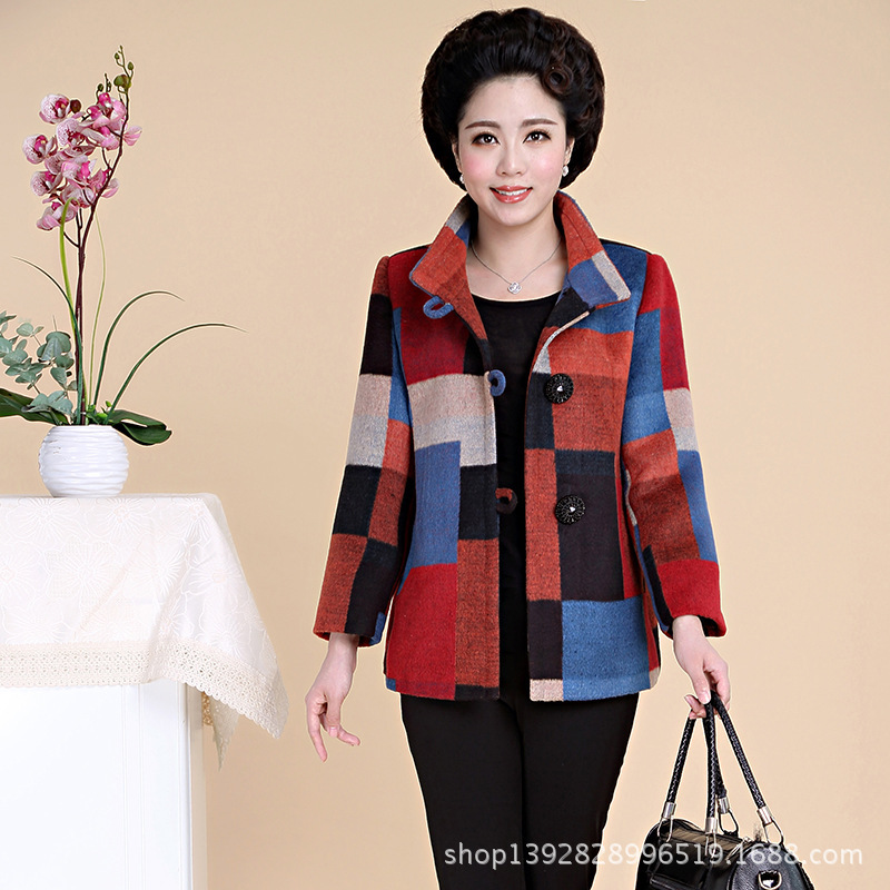 秋冬大碼中老年女裝格子羊毛呢外套中年婦女媽媽裝三粒扣呢子外套 /