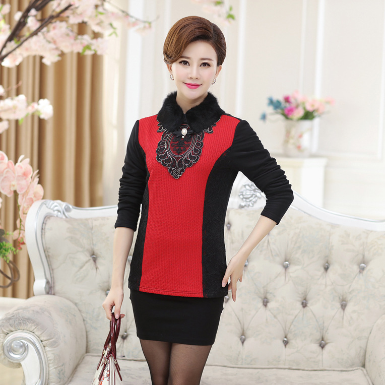 廠家直銷秋冬中老年媽媽裝毛領(lǐng)加絨打底衫女士長袖加厚保暖內(nèi)衣 /