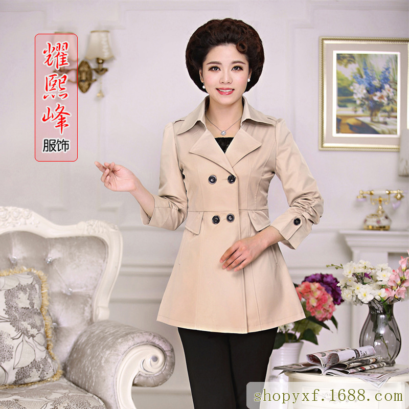 中老年女裝秋裝風衣外套新款中年媽媽裝雙排扣休閑修身翻領風衣 /