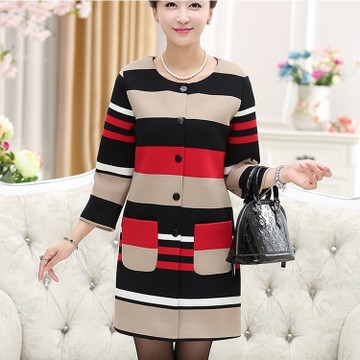 2015新款太空棉棉衣大衣 中年大碼媽媽裝40-50歲上衣圓領條紋 /