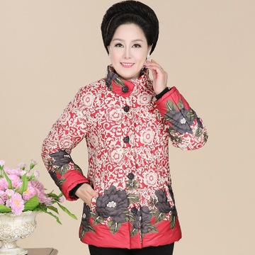 冬季新款中老年印花棉衣外套時尚大碼媽媽裝上裝加厚棉衣女小棉襖 /