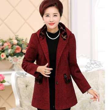 2015秋冬新款中老年女裝連帽毛呢外套媽媽裝寬松大碼呢子大衣 /