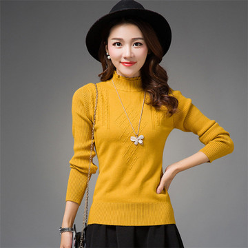 15秋冬新款套頭毛衣女短款修身半高領羊毛衫純色提花打底衫批發 /