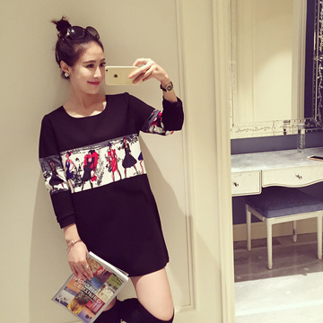 秋冬新款不倒絨拼接舞動(dòng)女郎孕婦連衣裙 加厚孕婦外出哺乳衣 /