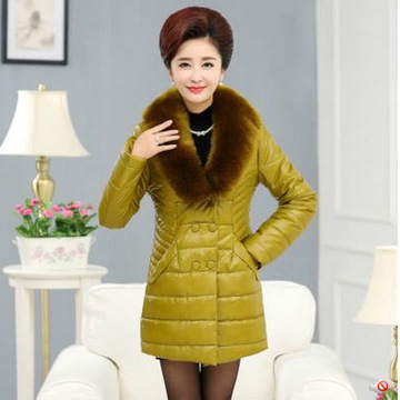 中年女裝棉服外套2015冬裝大碼中老年媽媽裝保暖PU皮棉衣 /