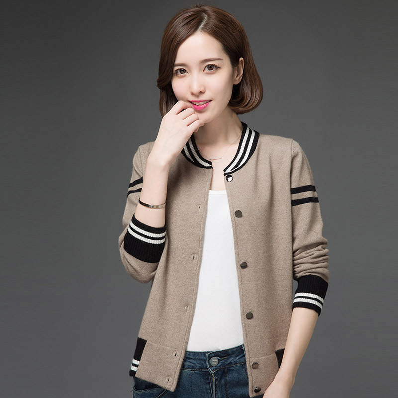 2015秋冬季新款女式毛衣貂絨衫時尚韓版棒球服撞色針織衫外套開衫 /