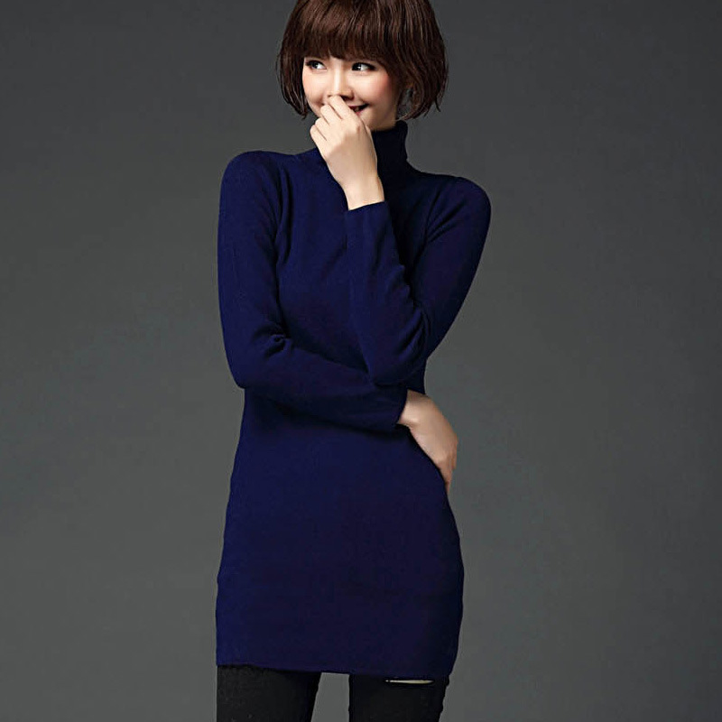 韓版2015秋冬新品高領毛衣女套頭中長款純色針織修身長袖打底衫 /