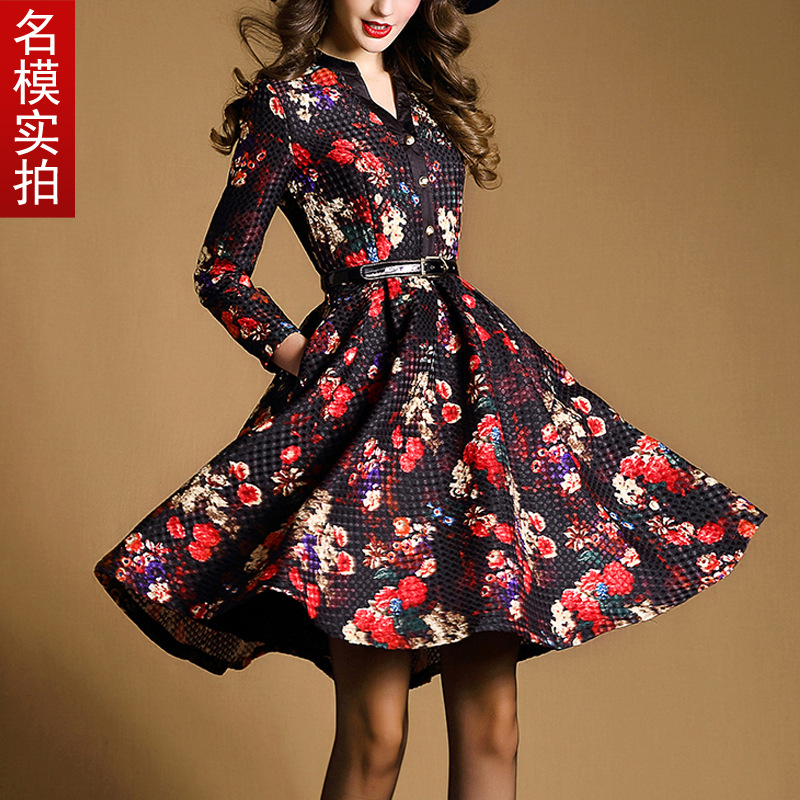 簡介: 貨源類別現貨 主圖來源實拍有模特 風格復古 圖案其他 工藝印花/印染 產地深圳 庫存類型整單 款式基本款 組合形式單件 裙長中裙 裙型大擺型 領型V領 袖型常規袖 袖長九分 腰型中腰 上市年份/季節2015秋季 面料名稱其他 主面料成分聚酯纖維(滌綸) 主面料成分的含量75(%) 是否庫存是