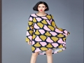 2015秋冬新品韓版寬松時尚連衣裙個性印花中長款胖妹妹顯瘦裙 /