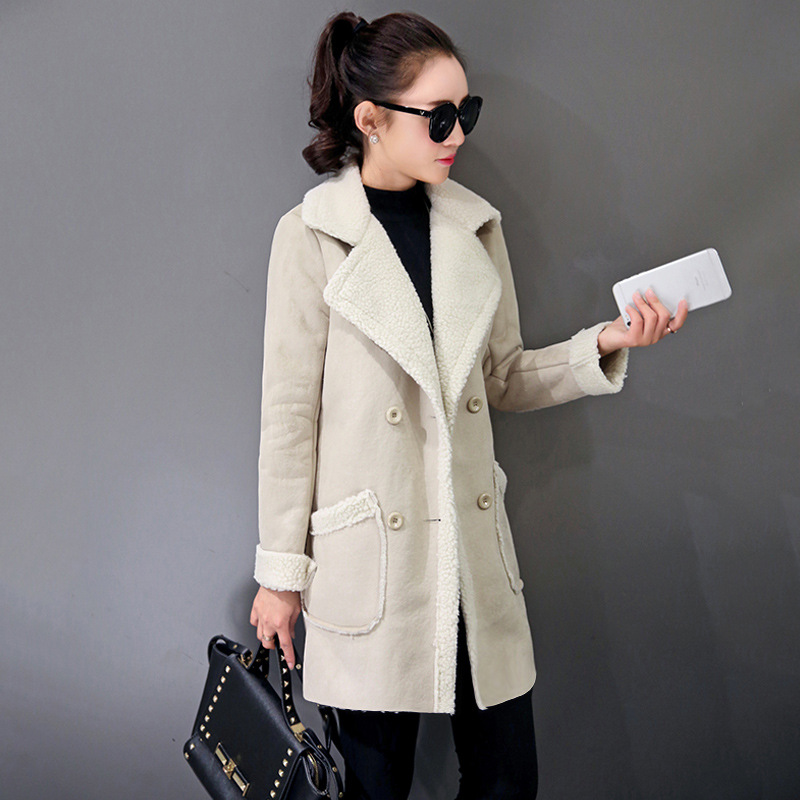 風衣女2015冬裝新款修身英倫鹿皮絨女式風衣中長款羊羔毛外套女士 /