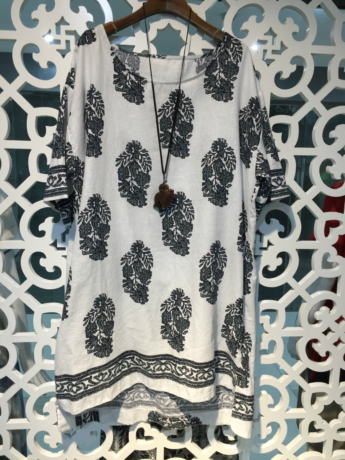 簡介: 貨源類別現貨 主圖來源實拍無模特 風格文藝 圖案印花 工藝印花/印染 產地杭州 庫存類型整單 款式基本款 組合形式單件 裙長中長裙 裙型大擺型 領型圓領 袖型常規袖 袖長短袖 腰型寬松腰 衣門襟套頭 流行元素印花 上市年份/季節2015夏季 面料名稱棉麻 主面料成分棉