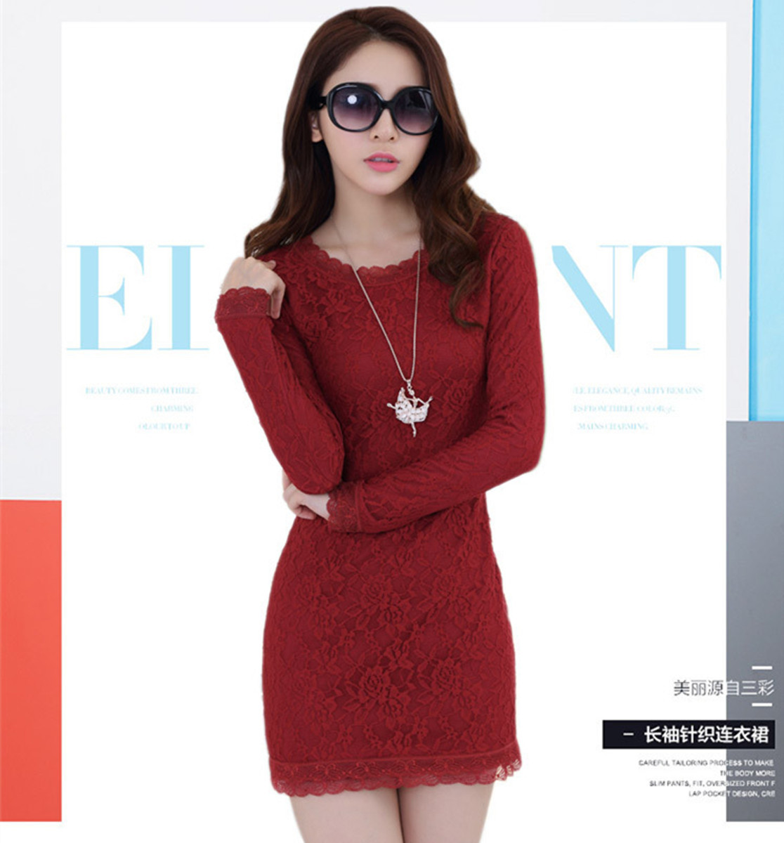 秋冬打底衫加絨加厚保暖中長款蕾絲衫包臀修身連衣裙免費拿樣 /