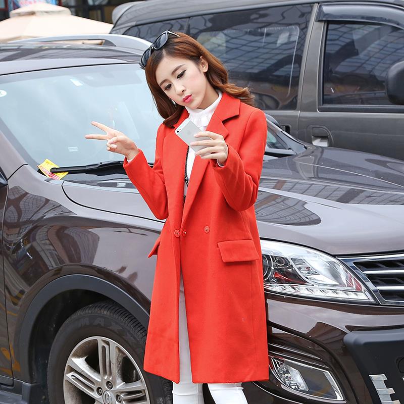 實拍2015秋冬裝新款女裝韓版純色毛呢外套中長款呢子大衣風衣 /