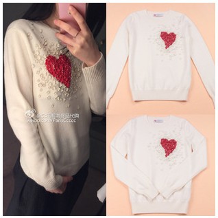 預定 2015歐洲大牌早秋新款 桃心立體花 華倫家限量愛心刺繡毛衣 /