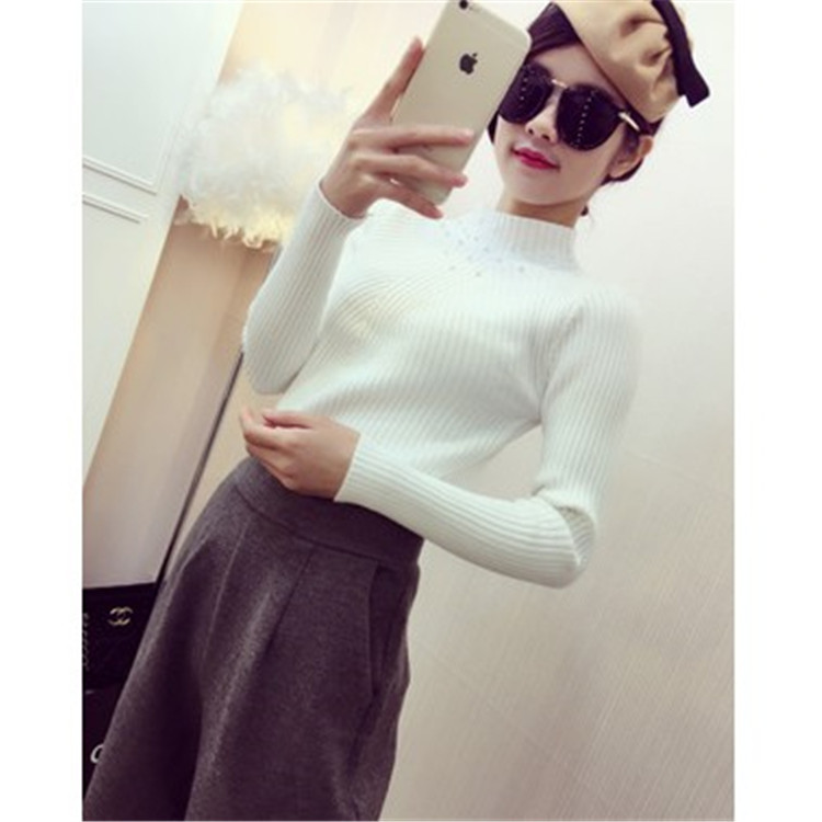 2015冬季新款女裝 歐洲站時尚百搭重工釘珠立體打底長袖針織衫 /
