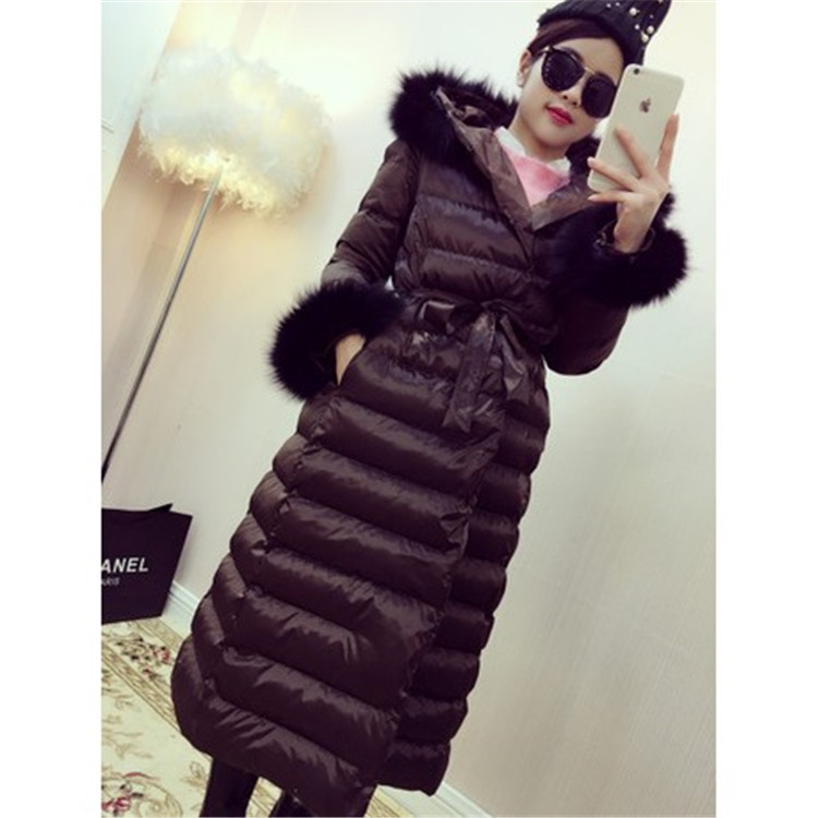 歐洲站15冬季新款女裝 小香風(fēng)真狐貍毛領(lǐng)修身長款羽絨棉服外套 /