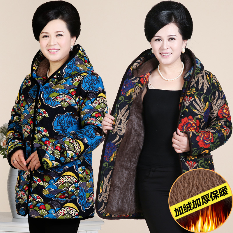 加厚中老年女裝冬裝上衣外套奶奶裝棉襖媽媽裝加大碼服裝加絨棉衣 /
