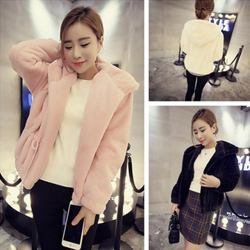 2015冬裝新款 連帽毛絨絨外套 抽繩百搭寬松保暖熊外套 /