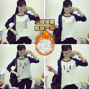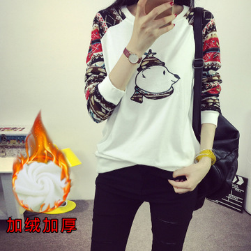 長袖t恤女款2015冬款裝新品上衣 加絨打底衫韓版卡通印花女裝批發 /
