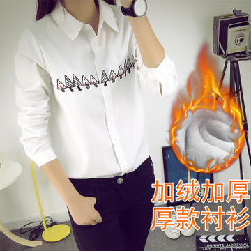 加絨襯衫女長袖冬季大碼加厚保暖白襯衣韓版中長款職業女士寸衫潮 /