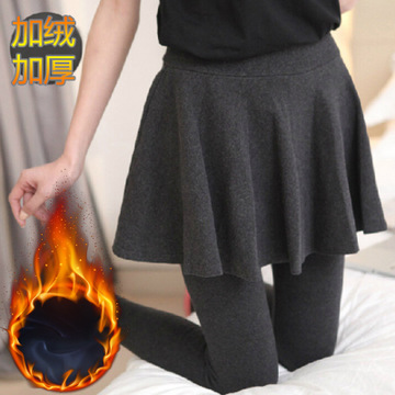 秋裝女士加絨打底褲秋冬裝假兩件褲裙韓版潮長褲外穿大擺裙一體褲 /