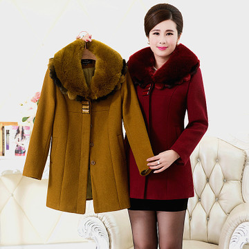冬裝新款中老年女裝中長款羊絨外套羊毛大衣毛領 /