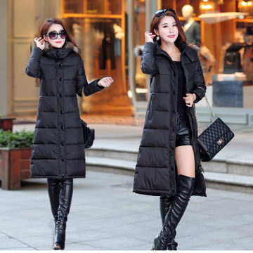 2015最新款羽絨棉服連帽修身棉衣女中長款大毛領(lǐng)加厚大碼外套 /