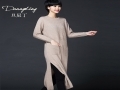 秋冬新款針織純羊毛100%長款修身開叉下擺純色長袖套頭打底毛衣女 /