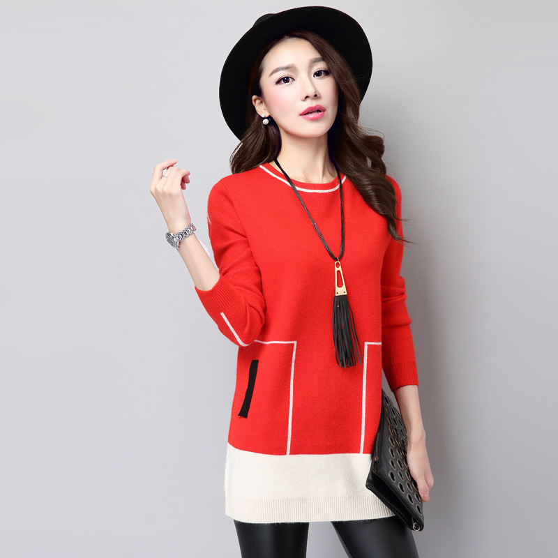 2015秋冬中長款女士針織衫套頭長袖保暖毛衣 大碼針織衫批發代理 /