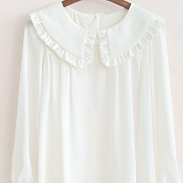 現貨 2015秋款娃娃領白襯衫女長袖韓版大翻領寬松雪紡襯衣 /
