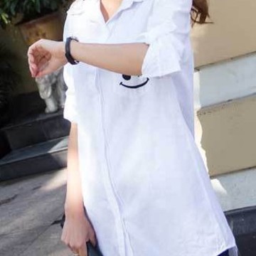 新款白襯衫女裝長袖韓版長款寬松笑臉襯衣4131 /