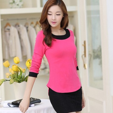 2015秋裝新款韓版大碼女裝上衣胖mm百搭寬松顯瘦女t恤打底衫 /
