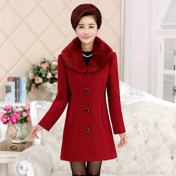 短款毛領媽媽裝羊絨呢子大衣女中老年大碼秋冬裝羊毛妮子翻領外套 /