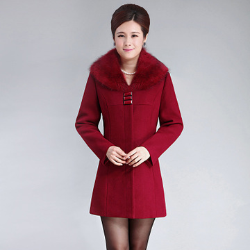 2015 中老年女裝秋裝外套冬裝新款中老年人花毛領毛呢外套 /