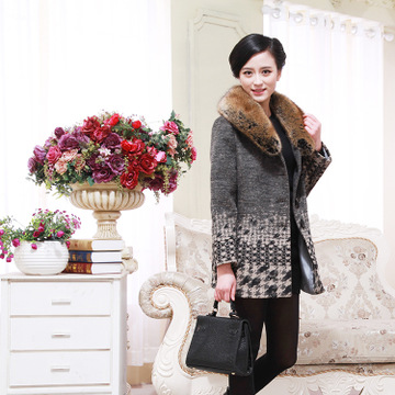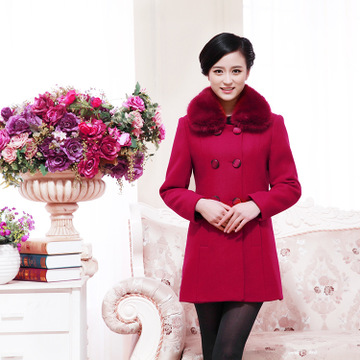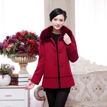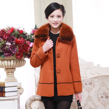 秋冬新款高檔長袖毛呢大衣中老年媽媽裝毛領加厚羊毛呢子外套批發(fā) /