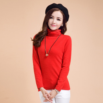 2015秋冬新款女士貂絨堆堆領套頭純色修身針織毛衣打底衫羊絨衫 /