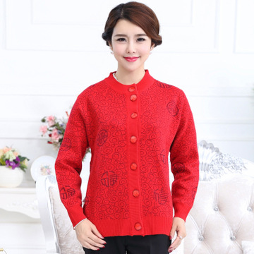 2015秋季新款熱銷 媽媽裝羊絨衫女中老年福字毛衣外套羊毛衫 /