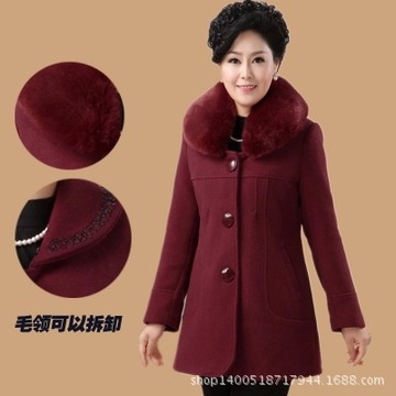 批發(fā)可脫卸大毛領(lǐng)中老年女裝羊毛呢外套冬裝媽媽裝中長款呢大衣冬 /