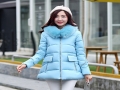 2015冬裝新款女裝大毛領可愛公主帽領修身加厚保暖棉服 棉衣批發 /