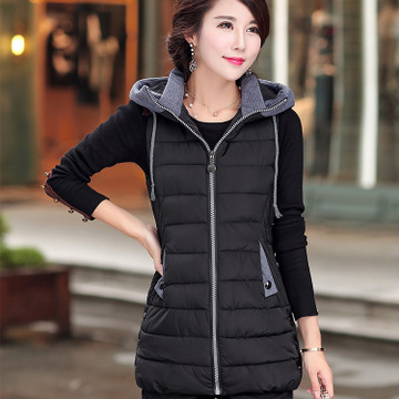 秋冬新款女棉馬甲中長款加厚保暖上衣 多色修身連帽女士馬甲背心 /